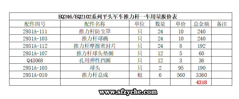 EQ246/EQ2102軍車推力桿修理包配件價格表