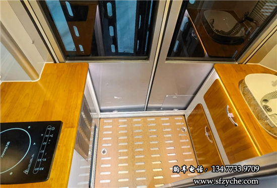 車輛尾部是獨(dú)立的廚衛(wèi)區(qū)域,可以通過移門跟生活區(qū)隔開,最大限度的降低油煙干擾和保證衛(wèi)浴間的隱私。后對(duì)開門設(shè)計(jì),車內(nèi)布局還可以根據(jù)自己的喜好,個(gè)性化定制。