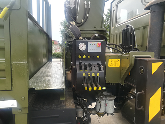 3. 采用三一5噸直臂式隨車吊,SPS12500型三一原廠吊機(jī),吊機(jī)自重2.27噸,最大起重質(zhì)量5噸,四節(jié)臂,舉升高度13.4米,工作半徑11.9米,一體式回轉(zhuǎn),車廂尺寸4.25米,遠(yuǎn)程油門控制,下操作,選裝液壓后支腿,上操作高空座椅。