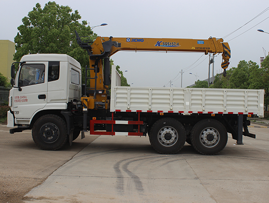 2. 采用徐工5噸折臂式隨車吊,SQZ105型徐工原廠吊機(jī),最大起重質(zhì)量5噸,三節(jié)臂,舉升高度11米,工作半徑8米,全液壓,全回轉(zhuǎn),車廂尺寸4.25米,遠(yuǎn)程油門控制,下操作。