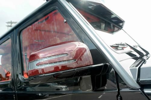 第一眼看去,這輛G63 AMG 6x6的涂裝會(huì)讓人感覺有些怪異。的確,這輛Brabus出品的六輪怪獸換上了紅色碳纖維車身改裝件,后視鏡蓋、輪眉以及引擎蓋都采用了紅色碳纖維材料。透過車窗我們能看到內(nèi)飾同樣是紅色主題,甚至是輪圈內(nèi)也有紅色點(diǎn)綴。